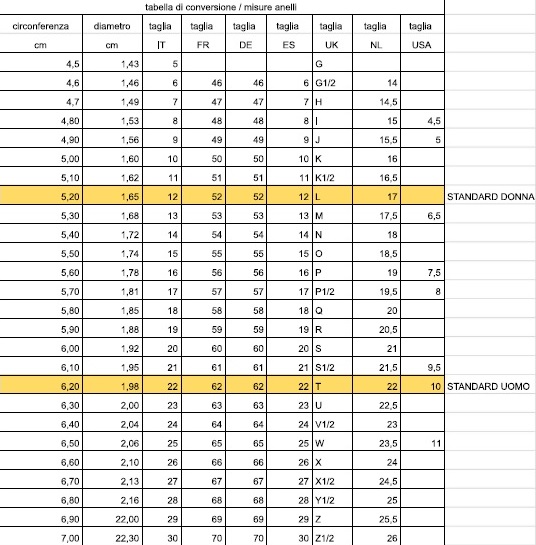 COME SI OTTIENE LA MISURA DELL’ANELLO